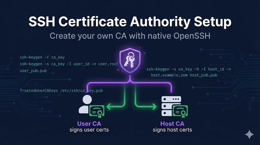 No special software. No complex infrastructure. No certificate chain hierarchy. Just a key pair that you designate for signing. This is different from X.509 PKI where you typically need a full CA application or managed service—SSH certificates work with native OpenSSH out of the box.